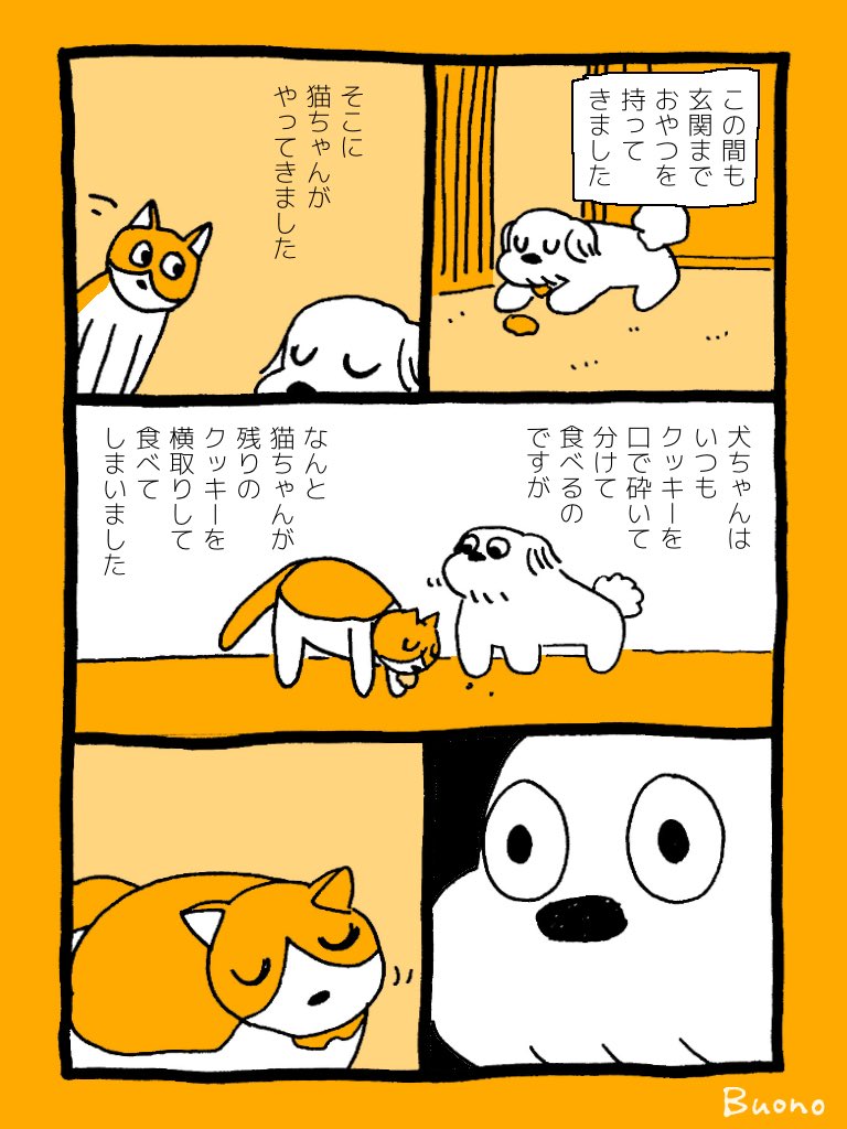 猫ちゃんと犬ちゃんの絡みはいつも軽め。